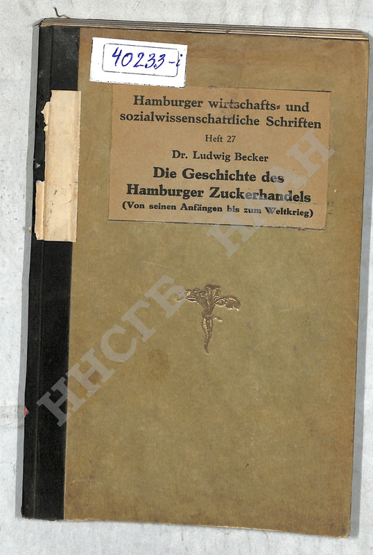 Die geschichte des Hamburger zuckerhandels : Hamburger wirtschafts und sozialwissenschaftliche schriften. Heft 27 / Ludwig Becker S.l., 1933.- 198s.